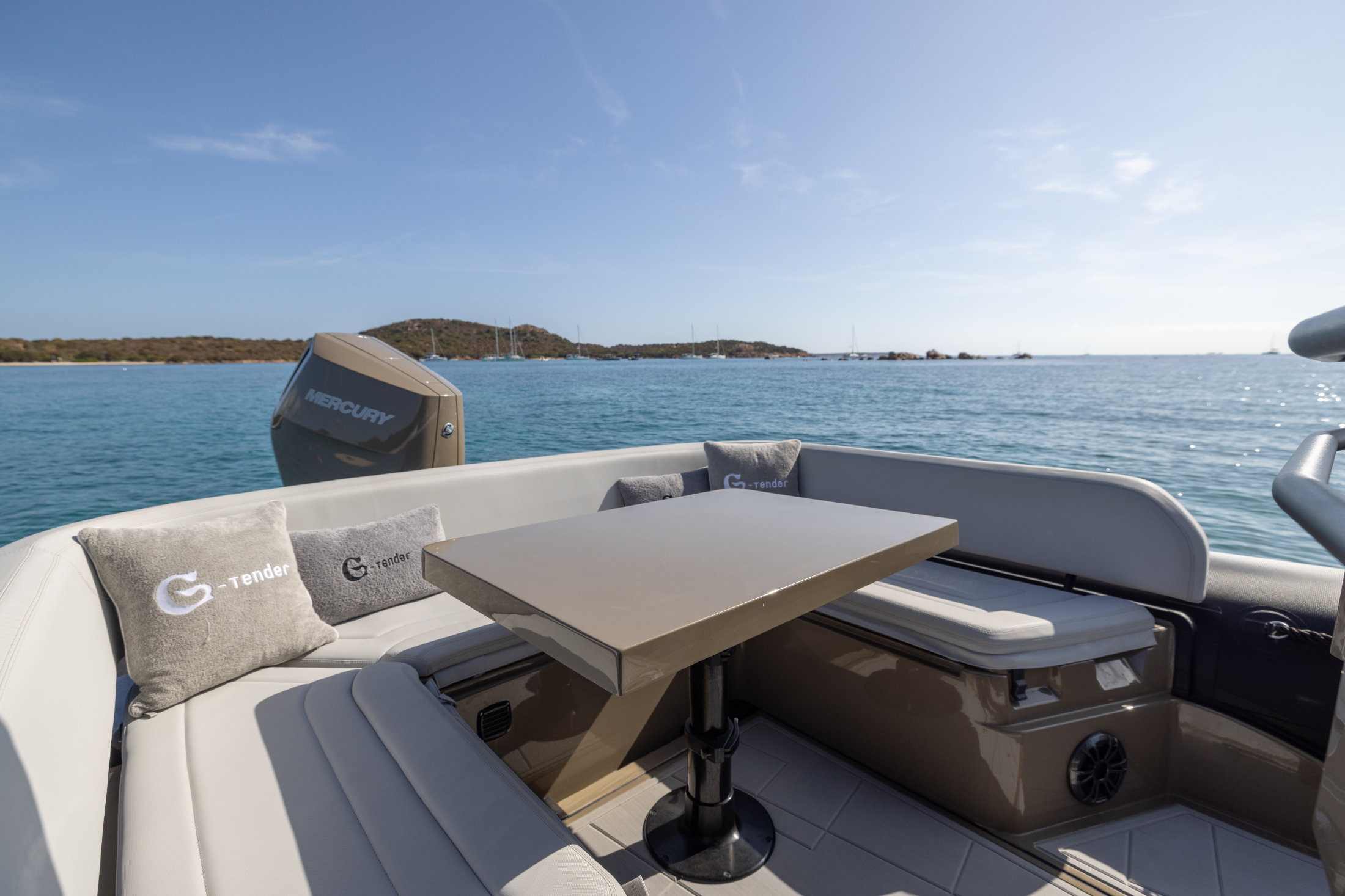 Il G-Tender OTTO.7 è la scelta ideale per chi cerca agilità, prestazioni e spazi ben distribuiti. Con i suoi 8,7 metri, questo modello combina una linea sportiva e accattivante con un livello di comfort sorprendente, perfetto per escursioni giornaliere alla scoperta delle meraviglie della Costa Smeralda.